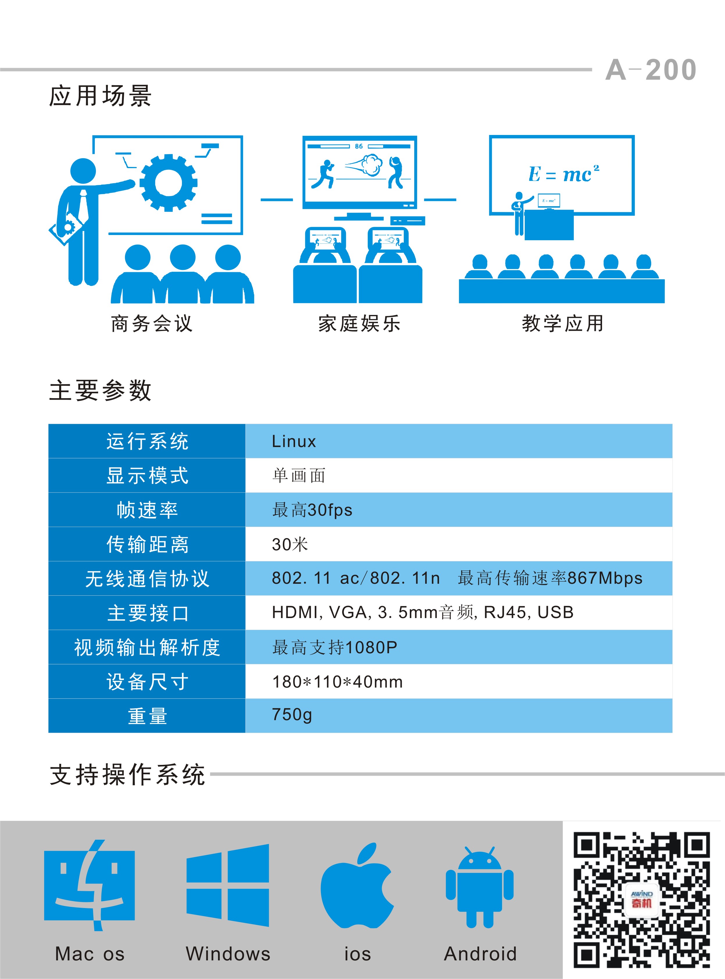 操作系統 | Windows 7/8.1/10 32和64位 MAC OS X 10.10/10.11/10.12及以上 支持智能手機無線投屏 兼容airplay功能,推薦使用iOS9/iOS10/iOS11,OS X 10.10/10.11/10.12及以上 Android 5.0和更高版本(需安裝APP) |