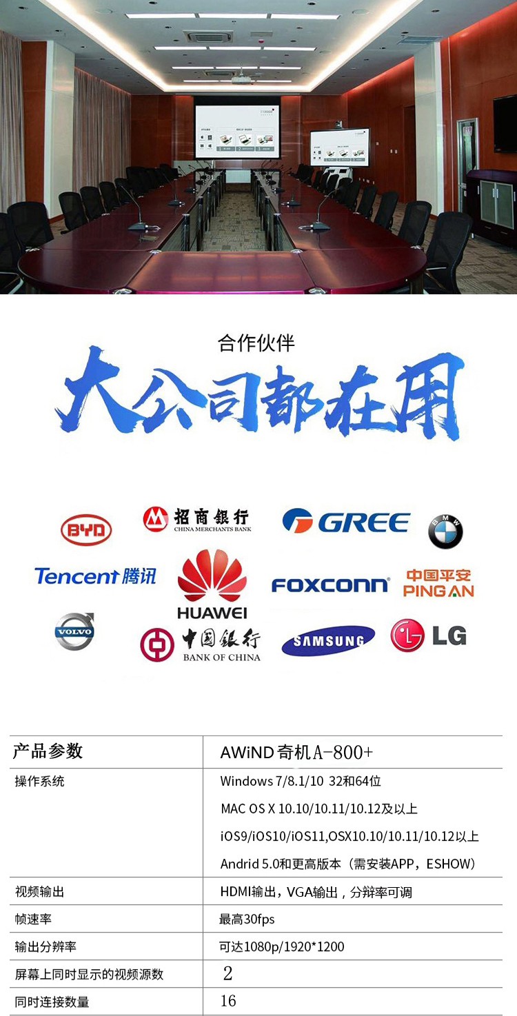 AWiND奇機無線會議投屏A-800+一鍵無線投屏一對多屏互動手機電腦無線投屏器